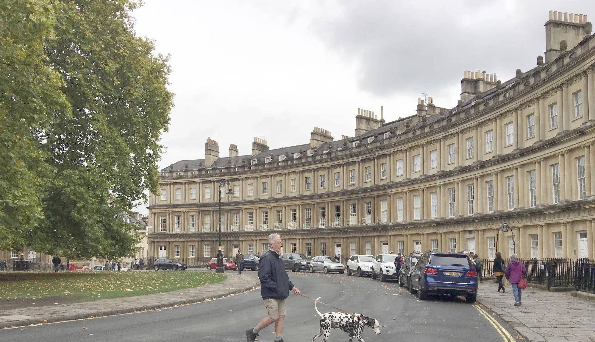 巴斯昆最著名的地方是皇家新月楼,它是巴斯最有气势的大型古建筑群,建立于1767~1775年,由连体的30幢楼组成,共有114根圆柱。皇家新月楼的道路与房屋都排列成新月弧形,尽显高雅贵族风范,被誉为英国最高贵的街道。现在当地人仍在居住,二百多年了保存依然完好并使用着,这在中国简直不可想象。让人赞叹之余还能联想到很多……