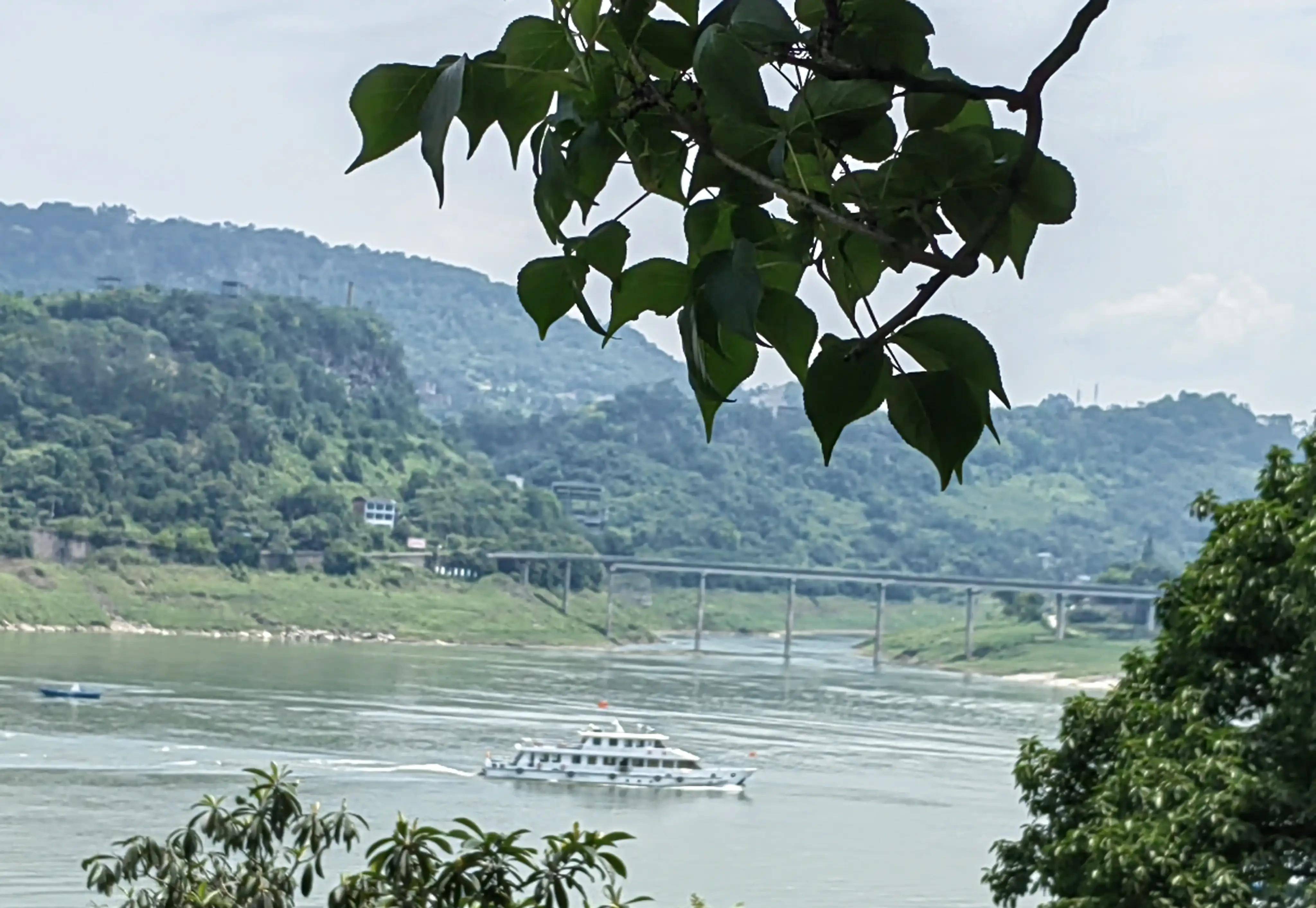 在农家乐稍作休整,我们便向江边进发。站在高处极目远眺,对岸的一栋栋高楼、一座座连绵起伏的山峰清晰可见;宽阔的江面上,微波荡漾,一艘艘游轮、货轮穿梭而过,一派繁忙的景象。