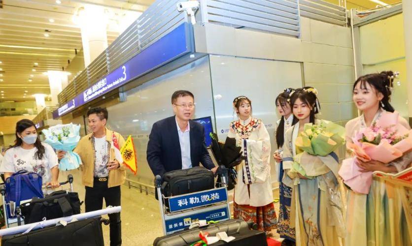 横幅、鲜花,欢迎仪式还特意请到了姑苏十二娘代表,身着传统服饰迎接游客。