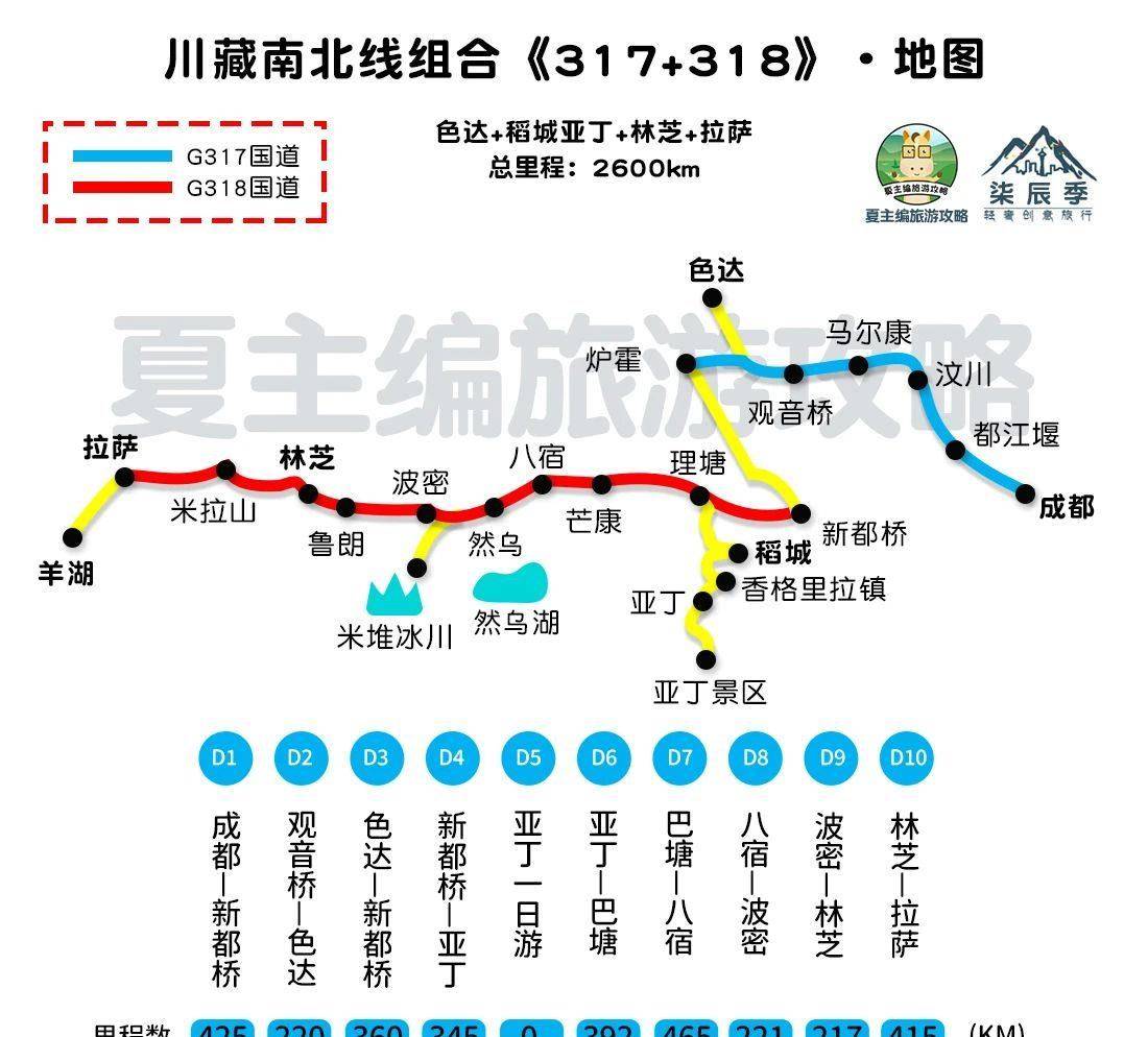 仅这一条自驾公路,就需要10天左右的自驾时间。如果要把图中所有自驾国道走完,G318川藏南线、G317川藏北线、G214滇藏下、G219新藏线、G109青藏线,用时100天都不见得够。许多人简单走了一条318川藏线,便以为见证了西藏之美,其实还差得远。