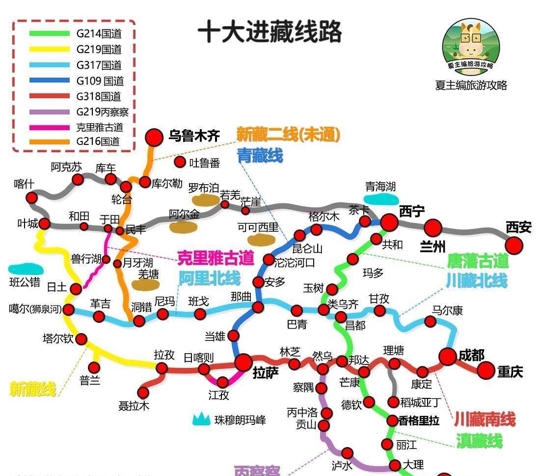 下面这一幅进藏旅途图,概括了从四川、青海、新疆、云南到西藏的所有自驾线路。这些令人魂牵梦萦的国道风光,不知道是多少旅客的自驾梦想。