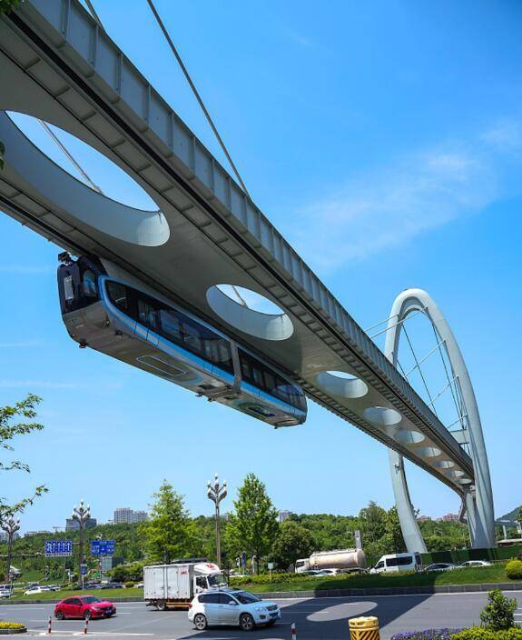 现在出现了一种270度风景的“空轨”,全称是悬挂式轻型空中轨道。它的轨道不像传统方式的轻轨或者地铁在车身下方,而是在车厢顶部。列车悬挂在轨道上,将车辆对于地面的行进改为空中前进。拥有独立的线路权,不受地面其他情况所干扰,也被叫做空中列车。