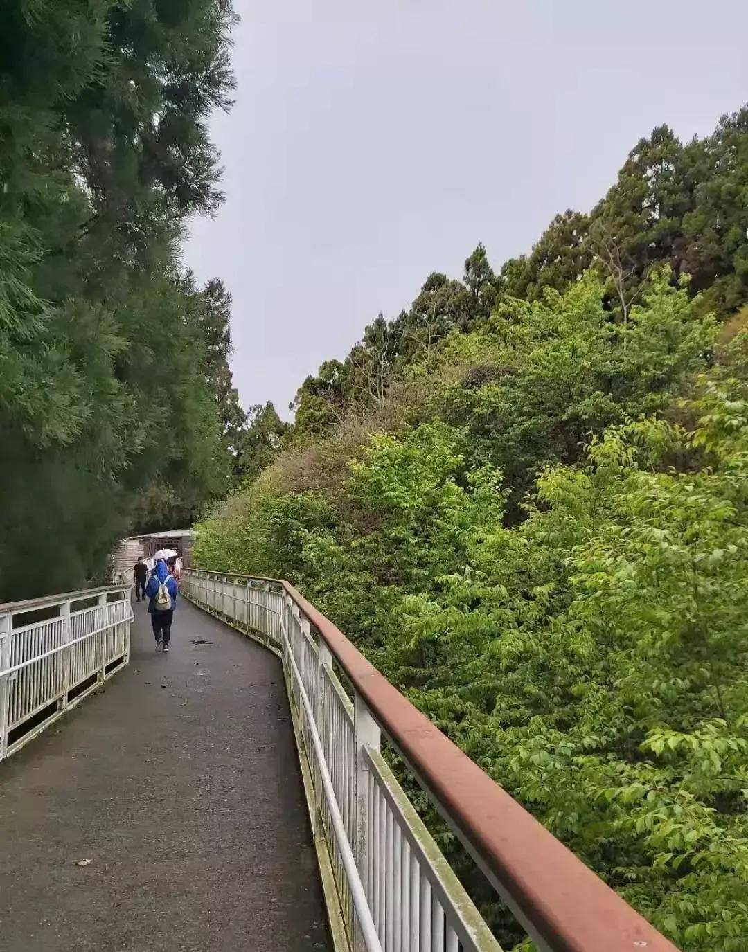 高空观景步道,如一条白色长龙,延绵曲折,徜徉群山环绕,绿意盎然间,天空细雨水雾氤氲,烟锁春意阑珊,尽管天空不作美,我们还是边走边看,边拍美景。不一会天空晴朗,阳光照耀,碧草如茵。尽管我们是匆匆过客,也追随拍摄婚纱照的新人 ,在取景地体验着文化风情的浪漫与惬意。