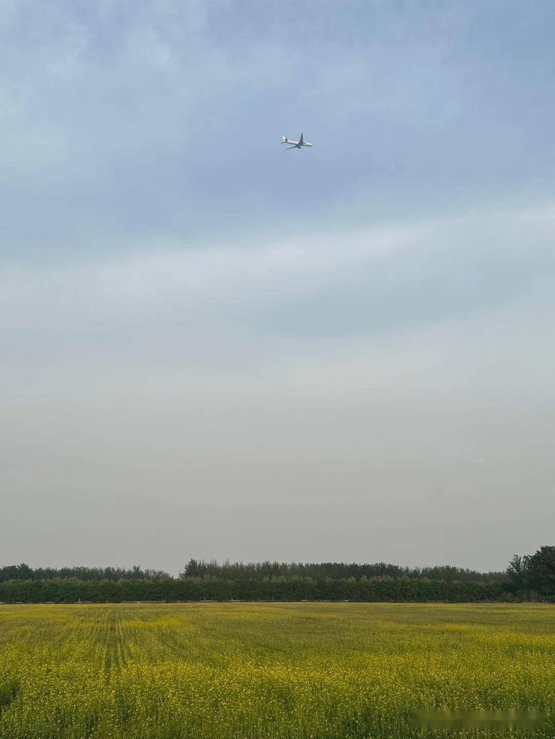 由于这里离机场很近,不时有大飞机从头顶飞过,摄影高手能捕捉到飞机飞过花海的场景,我也试图拍,不过拍照水平太烂,只能勉强把飞机拉进画面里。
