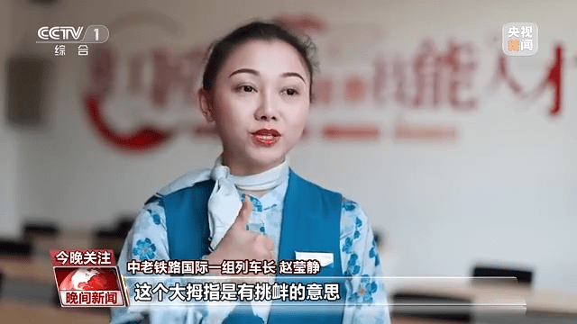 中老铁路国际一组列车长 赵莹静:针对不同的外籍旅客,他们这些手势并不一定是通用的,就比如说一个大拇指,我们都知道它是表示的是“好”,但是这个对于东欧国家的人来说,这个大拇指是有挑衅的意思,这些就要严谨地去学习的每一个细节。