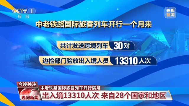 中老铁路国际旅客列车开行一个月来,共计发送跨境列车30对,边检部门验放出入境人员13310人次。从地域来看,这些出入境旅客分别来自28个国家和地区,其中,来自中国、老挝和泰国的旅客人数居多。从出入境的情况来看,入境7024人次,出境6286人次,入境人数比出境人数多11.7%。入境的外籍旅客中大多是来中国旅游、留学和考察市场的。
