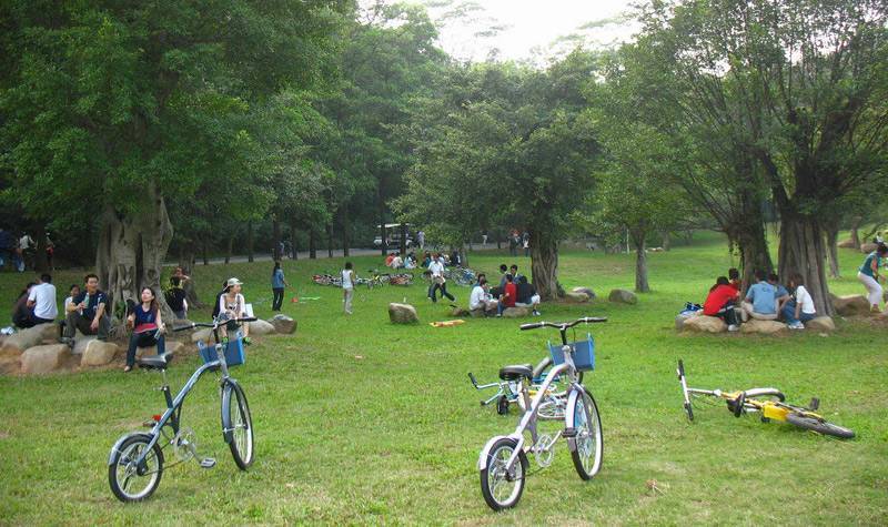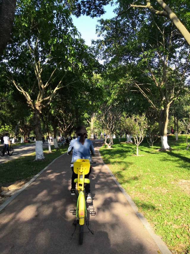 公园外街道两旁的商铺都有出租自行车,有单人也有多人的,价格不算贵,喜欢运动的可以租一辆车骑行,租金基本在30元一天,可以选择押身份证或者现金。当然也可以选择步行,但是公园比较大,靠步行可能会有点累。我和朋友租了一辆二人单车,在公园里边骑边欣赏风景,既能锻炼身体又能呼吸到新鲜空气,真的是不错的体验。