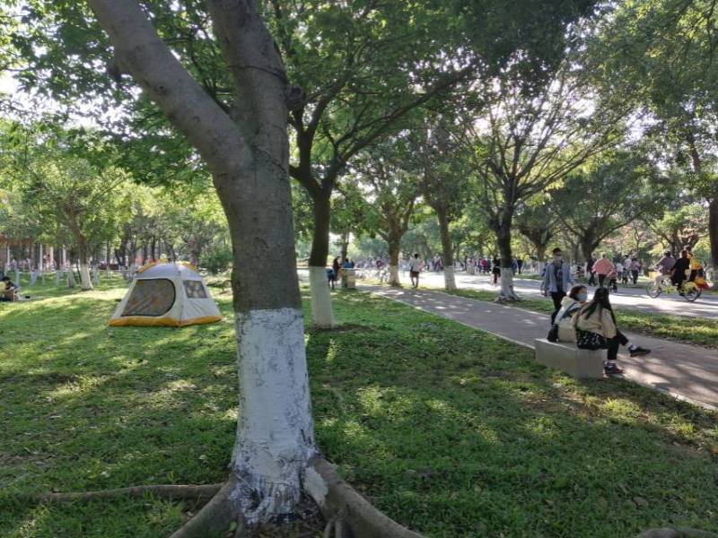 喜欢运动的人也可以在园区里面跑步,打羽毛球和跳绳的人群也随处可见,在绿植如此丰富空气又新鲜的地方运动是一种很舒服的体验。