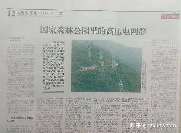 法治日报社《法治周末》报道的《国家森林公园的高压电网群》