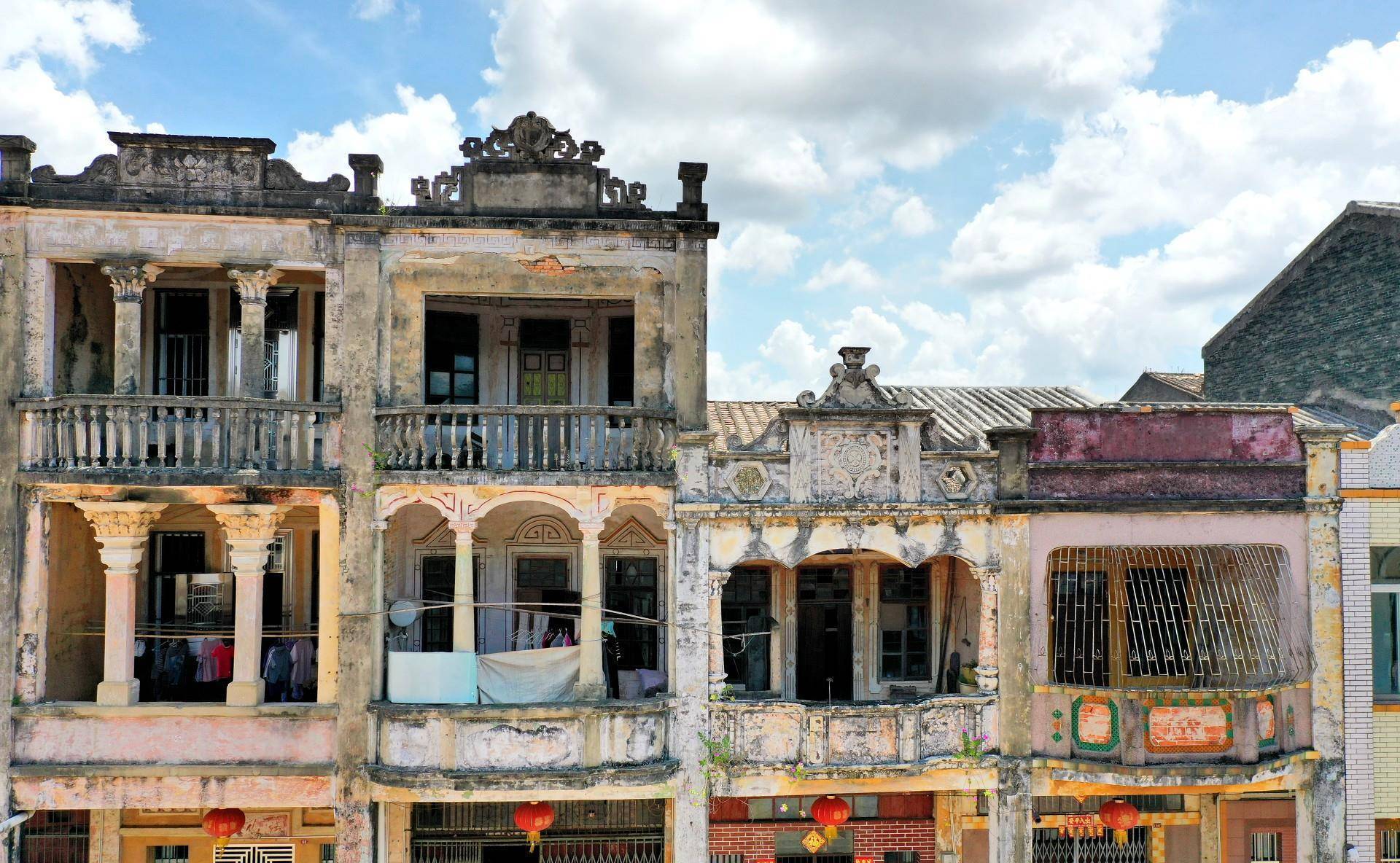 这就是位于广东省台山市的梅家大院,这是一座由华侨联合建立的古建筑,大约百年前,广东有一些商人出海经商,之后带领侨眷来到这里用股份制的经济方式来打造一个市场,当时股份还未盛行,也是经济模式的一种探索,他们根据不同的姓氏进行股份分割,其中梅氏家族股份大约过半,因此便以“梅家大院”对这座古城进行命名。