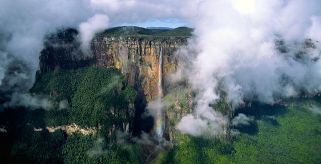 但平坦的山顶无法储存如此丰富的水资源,这造就了罗奈马山的瀑布群,数量多,倾泻高度大,其中有一条安赫尔瀑布,是世界上落差最大的瀑布,落差高度将近1000米,又名“天使瀑布”。瀑布给下方的树木带去了水源,下方的树木充满生机与活力,也是当地多条河流的发源地,这也让这里的生物圈异常稳定,山上生活的动物80%是罕见的生物,世界其他地方都已经绝迹,只有这里才有,特别是一些史前生物遗迹。