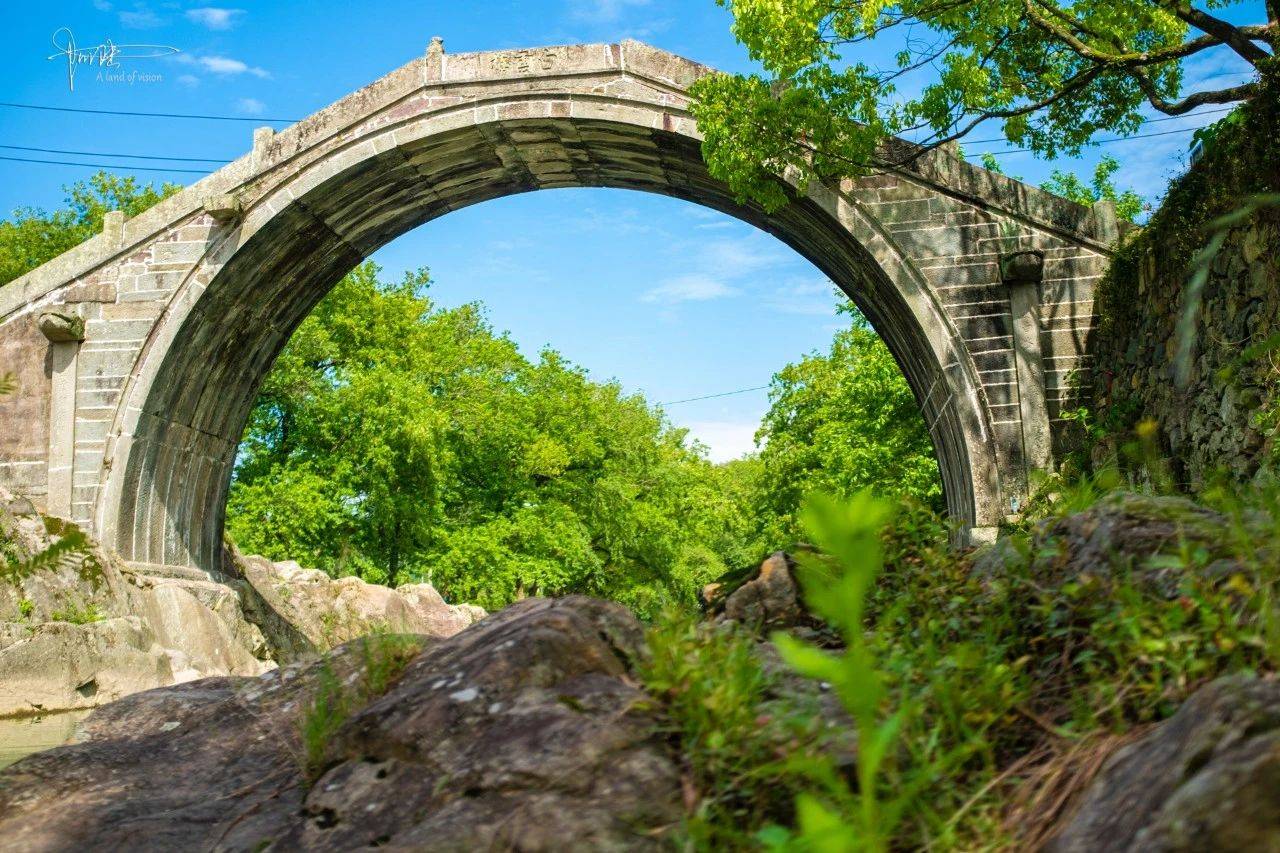 远远看去,这座单拱石桥犹如长虹临空般,横跨于晓鹿溪(俗称大溪,古称长涧)之上,因其拱圈大约有正圆的三分之二,所以体态略显“丰硕”,但整座桥身反倒变得有点“轻盈俊秀”起来。