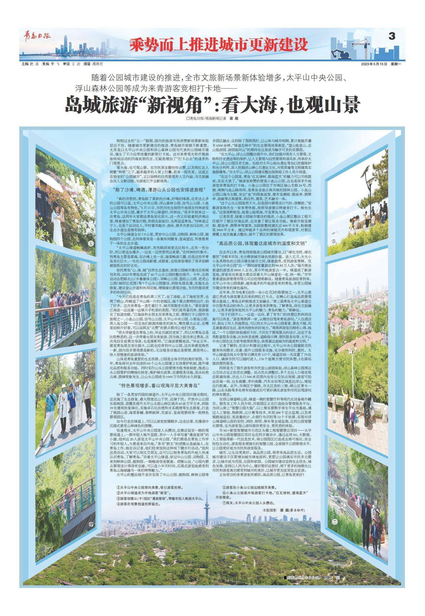 刚刚过去的“五一”假期,国内的旅游市场消费新场景新体验层出不穷。随着城市更新建设的推进,青岛城市面貌不断重塑,尤其是以太平山中央公园和浮山森林公园为代表的公园城市建设,催生了不少自带流量的新晋打卡地。这对来青观光和开展商旅休闲活动的四海宾朋而言,无疑是增加了“打卡必去”的诸多热门观赏点。