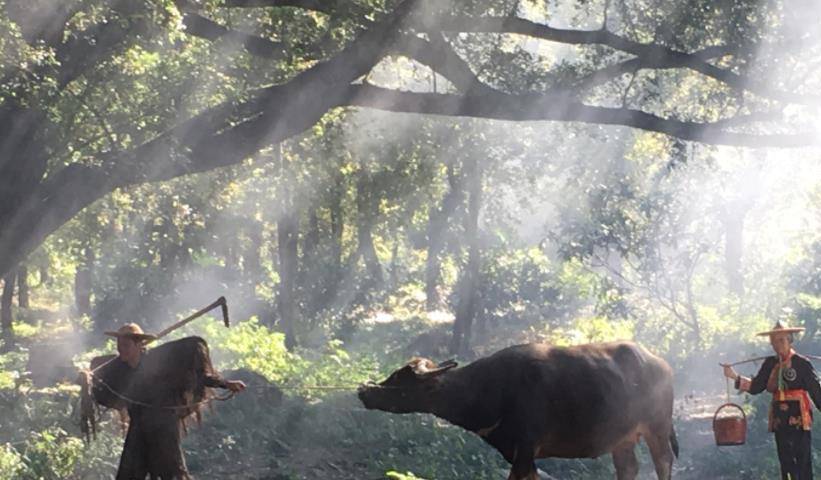 第三个是牙城镇杨家溪,它最出名的就是杨家溪千年榕树和万亩枫林树。杨家榕树在雨雾中显出他的身影,朦胧感更甚,形成了一个幽闭静谧的环境。在秋天的时候,红色的万亩树林有好似一匹红色的丝绸,让人流连忘返。