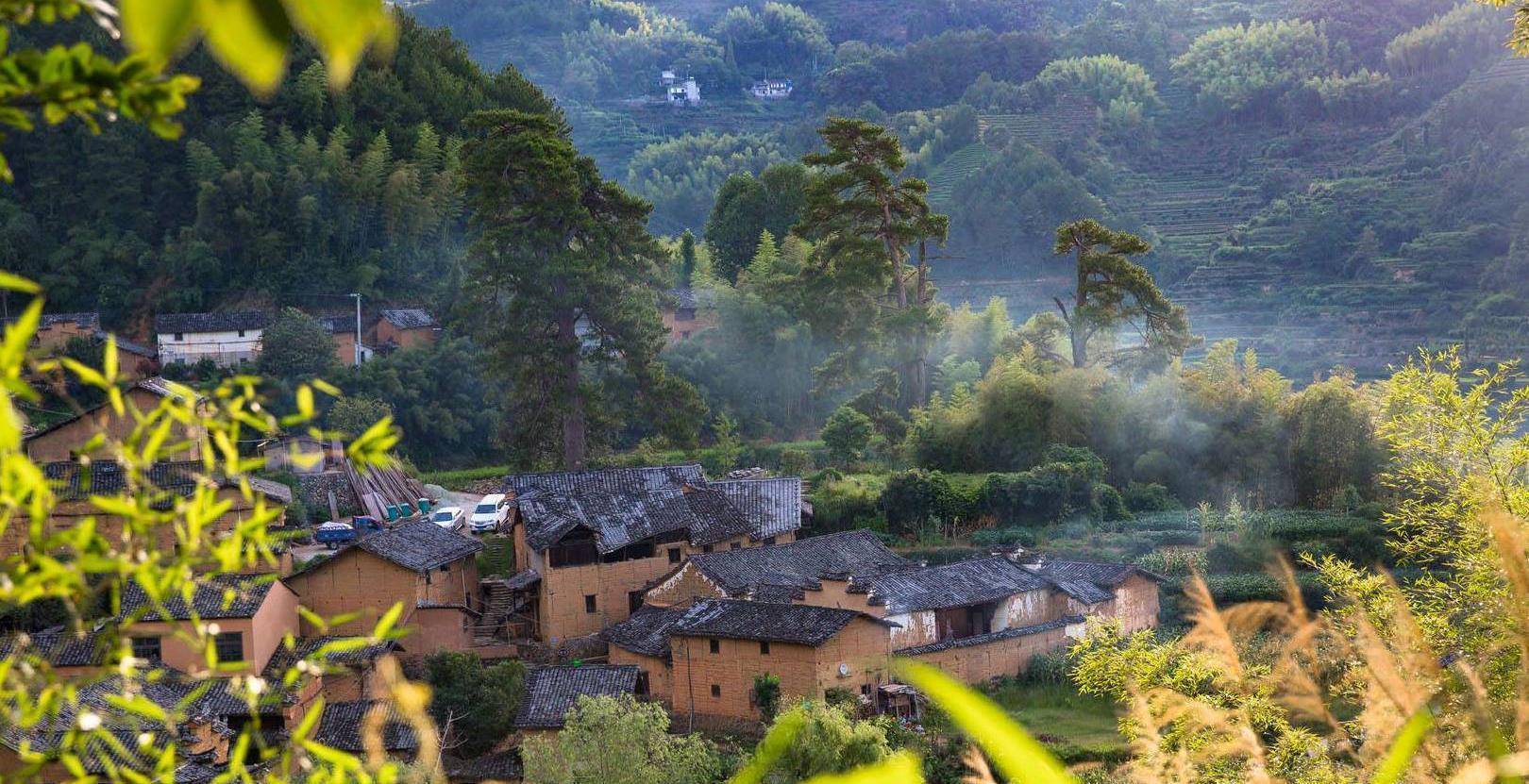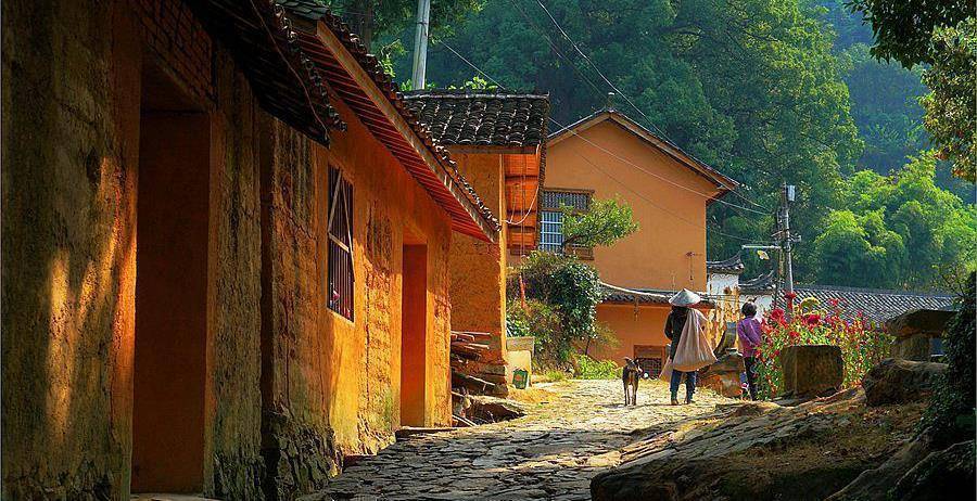 村庄的景色也是很美的,整座村庄都是被青山碧水包围着。房屋几乎都是依山而建,阶梯式的形状层层展开,村中的房屋都是泥土建筑的瓦房,高低错落有序,上下的房屋高低差距有两到三米左右,在阳光的照射下泛着金黄,所以这里也有着“江南布达拉宫”的美誉。