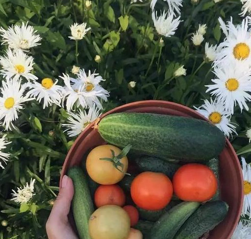 Marina最爱的就是屋前的那片田,原本荒芜、杂草丛生的荒田,被她一点点的填满出四季的样子,瓜果蔬菜都是最鲜美的样子。