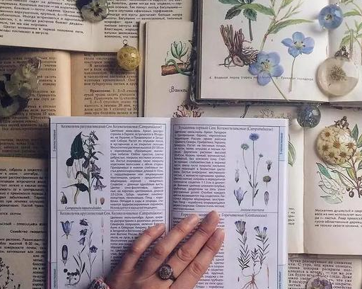 除了花,她还喜欢看书,各种各样关于植物的书,而干花便是最好的书签。