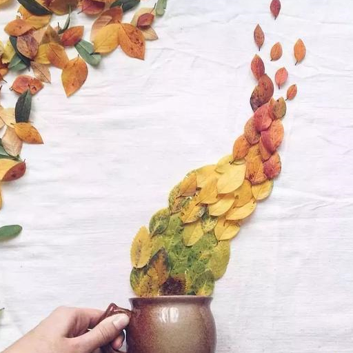 她巧妙地将花朵、花瓣、枯枝等看似简单的素材摆成瀑布状、旋涡状、流水状等,再搭配精致的欧式茶壶茶杯,让花仿佛动了起来,如同泉水倾泻而下,每张图都想让人忍不住品上一口。