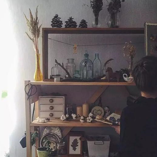 鲜花干了就干了,枯萎之后变成的焦糖色,静静落在书架上,也有一种复古怀旧之美。