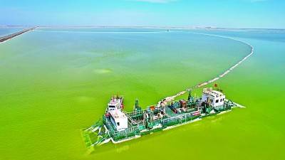 察尔汗盐湖上的采盐船。青海省海西州委融媒体中心供图