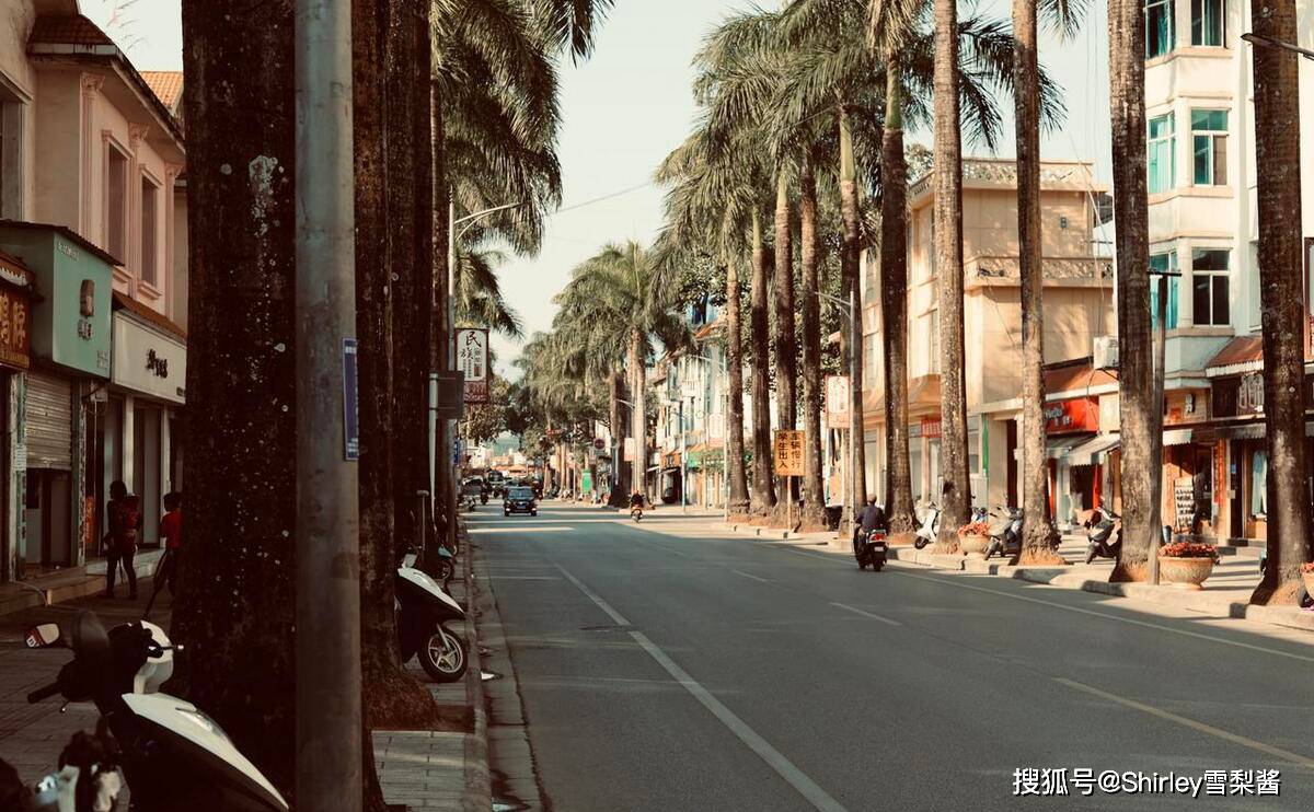 芒市最出圈的一条街道,是除了金塔、银塔之外的另一城市明信片角度。道路两旁种植着高大挺拔的椰子树,走在其中很有置身东南亚小城的感觉。