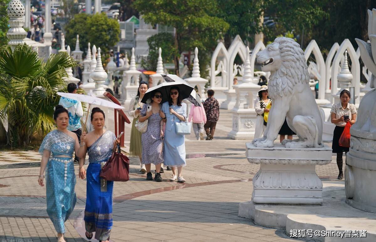 在不缺旅游胜地的云南,芒市得以火到出圈的最大原因,是这里被网友视作平替版泰国。随处可见的东南亚风情,配上路边的棕榈叶、芭蕉树,手机随便拍一张就仿佛置身泰国。游客既可以选择在芒市进行1-2日的景点打卡游,也可以小住数月。毕竟这里刚火起来,商业气息不浓,物价也不贵,完全可以感受慢节奏的度假氛围。