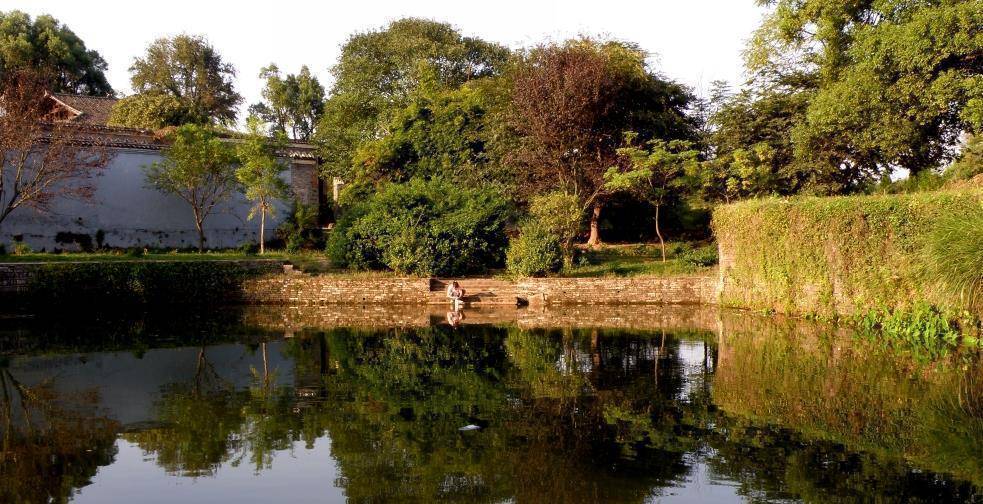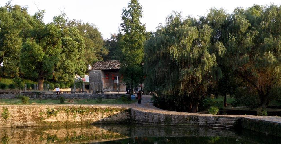 村南是座"忠节第"的牌坊,经过牌坊后是七口水塘,仿照北斗七星形制修造,把村庄分为南北两半。其中有一口水井为宋代打造,寓意着圆月,有绵延不休、富贵长久之意。村中心是文忠公祠,建于北宋末年,祠堂前有30多米长的甬道,门坊上方装饰有天井、回廊。