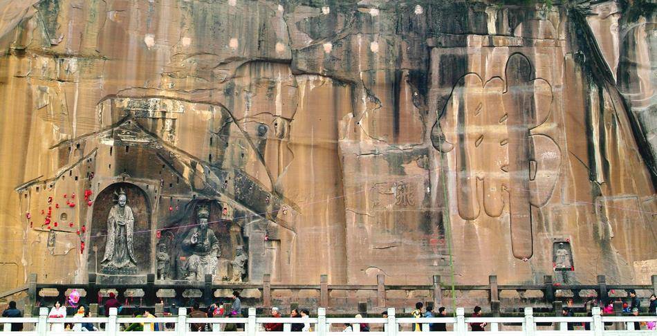 大佛寺内的看点还有很多,其中保存有大量的摩崖石刻,数量惊人,光是人形造像就有900多尊,是我国西南地区最早的石刻造像,其中在摩崖造像里还有一幅字像,上面写着“佛”字,被称为“顶天大佛字”,是全国最大的“佛”字,那么你们对这里感兴趣吗?想来看看么?期待你们留言。