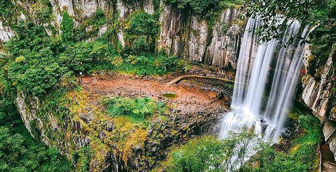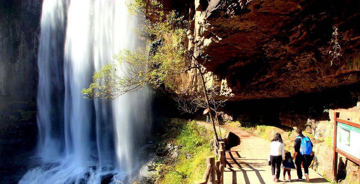 飞瀑离人很近,却又捉不住,可观云、观雨、观山、观雾,运气好,还可以看到彩虹出现,而且有一段路在瀑布里面,犹如花果山水帘洞一样,如果不带雨衣、不带伞,从中穿过很容易会湿。虽然这里景色壮阔,但是因为交通不便,再加上名字实在是有点拗口,所以这里名气不大,没有什么游客。