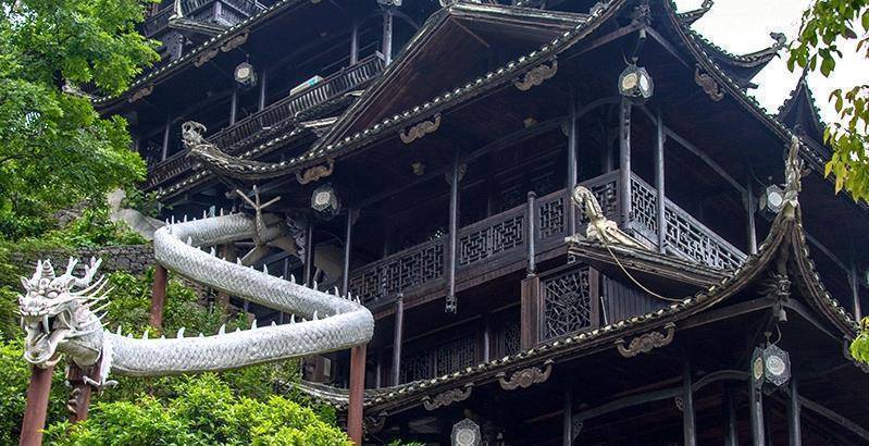 土司城自古就被誉为“南方紫禁城”,规模较大,规制奇特,可与北京故宫、西藏布达拉宫相媲美,其中的木雕石雕技艺更超越了许多古遗迹建筑。这里最有看点的就是吊脚楼,不仅拥有规模最大的吊脚楼群,并且其中有一座还是目前我国保留吊脚楼中最高的一座,名为“九重天”,是由李宏进行设计开发的,大约有48米高,有12层,整个建筑没有用到一根铁钉,全部都是木质结构。