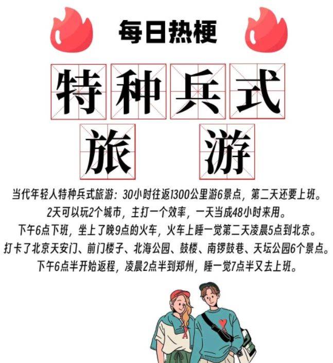 不睡觉、不休息一天十几个景点,日行上万步“特种兵式旅行”主打一个时间紧、任务重而假期越短,旅程越赶,则玩得越狠!
