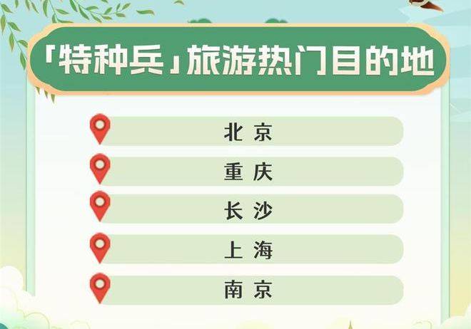 当下最受欢迎的“特种兵”旅游目的地,往往是景点相对密集、火车、高铁和市内公共交通便利的城市,因此北京成为年轻人最为关注的“特种兵”旅游目的地,重庆、长沙、上海、南京等拥有众多标志性景点和美食的城市,也是年轻人“心水地点”。