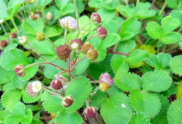 和普通的草莓相比,黄毛草莓的花期稍稍迟缓了一些,大概在每年的五月份。它的花型小巧,色泽洁白,常常隐藏在枝叶下面,如果不仔细寻找的话,还真难发现它的存在呢!到了七月初的时候,黄毛草莓的果实会逐渐成熟,它的果实比普通草莓稍小一些,外形饱满圆润,表皮洁白透亮,上面布满了密密麻麻的粉色斑点,尤其是在阳光的照射下,果皮上会泛起一道玉石般的光泽,不要说品尝它的味道了,只要看上一眼,都会让你的口水淌下来。