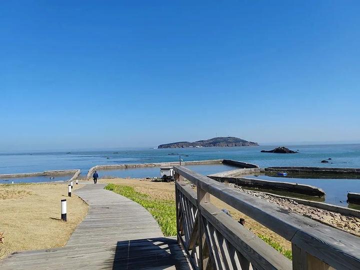 从岸边远眺鸡鸣岛,感觉它近在咫尺,朋友说鸡鸣岛距离海岸线只有8海里的距离,乘船只需要十几分钟就可以到达鸡鸣岛。