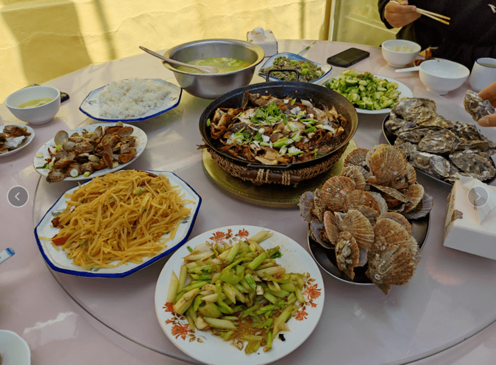 索性就在村子里的农家院里吃个午餐,大叔烧火、大姨炒菜,烹饪了一桌地道的渔家饭。这蜢子虾酱是他们自己捕捞发酵的,味道很鲜美,鲜活的虾蟹徒增了许多美好。