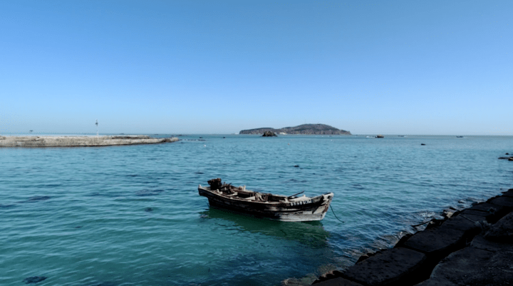 十几分钟后我们到了鸡鸣岛,码头附近的海水几乎没有一点污染,清得可以看见海底的卵石;远处的海湛蓝如宝石,波澜不惊;薄薄的晨雾中充斥着海的味道,空气也微微有了些质感。