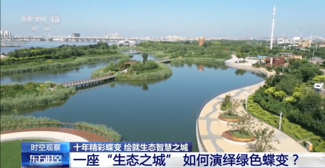 而曾经是寸草不生的盐碱荒地,如今也已经被改造成了绿树成荫的花园城市。累计绿化面积超过1100万平方米,建成区绿地率达50%以上,40座公园建成投用,居民走出家门就可到达公园散步休憩,呼吸清新空气,感受家门口的“诗和远方”。 从最初的臭水沟、盐碱滩到现在的“最美河湖”、花园城市,中新天津生态城是如何演绎绿色蝶变?