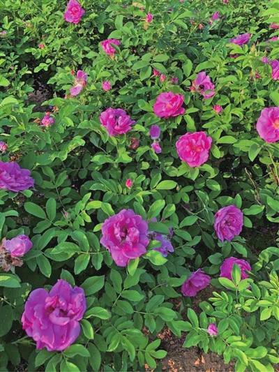 “有人会把它错认成刺玫花,其实可从茎、叶、花、果四点来区别。”朱强介绍说,一般刺玫花茎刺较大且每节大致有3~4个沟,叶子上面无毛,下面有柔毛,花通常是6~7朵族生,结的果子近球形,呈红褐色或紫褐色。冷香玫瑰茎直立或弯曲,有淡黄色的皮刺,叶子有褶皱,开的花单生或1~3朵簇生,结的果子呈砖红色扁球形。“简单说,一般花开得多,果子呈球形的就是刺玫花,若花开得少且果子呈扁球形就是冷香玫瑰。”
