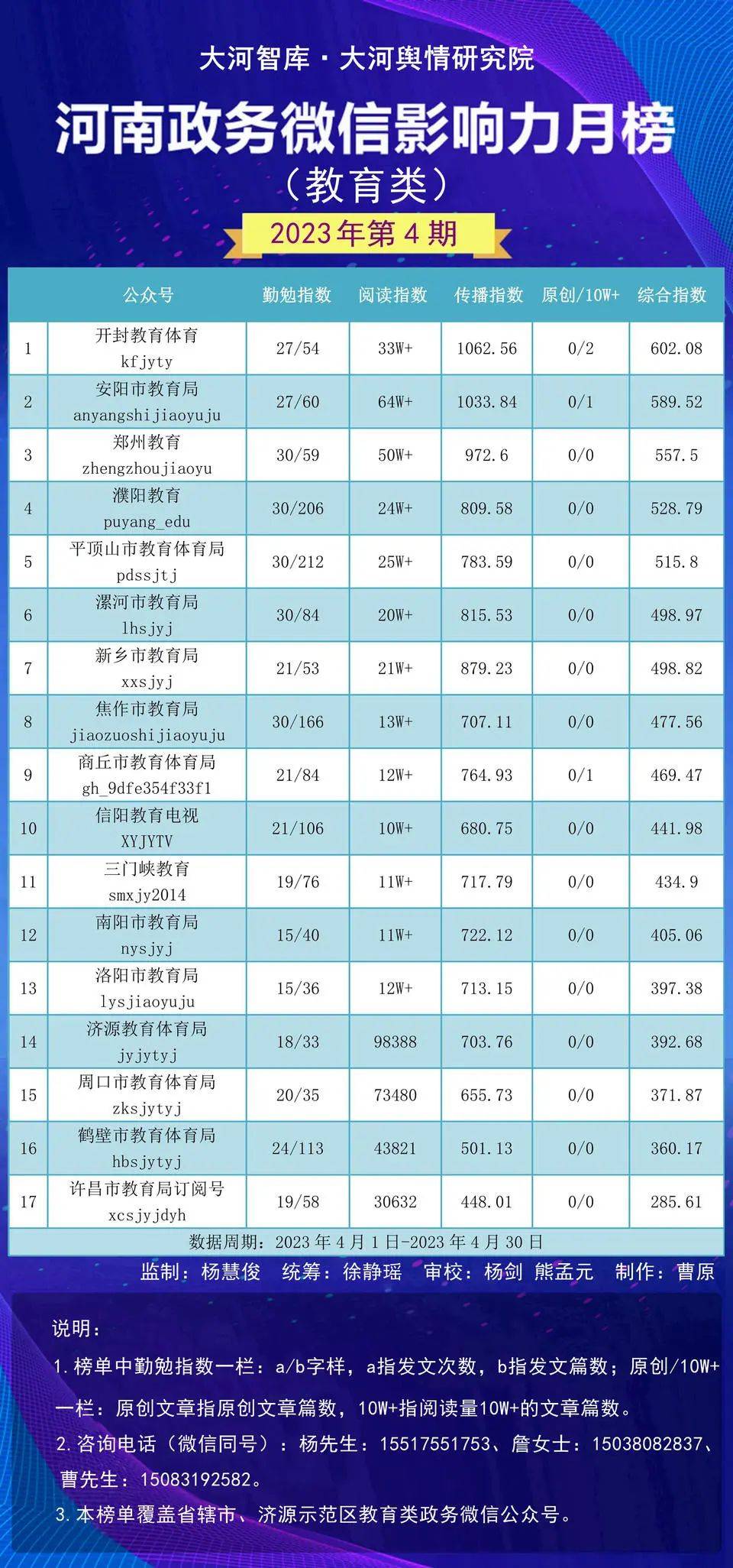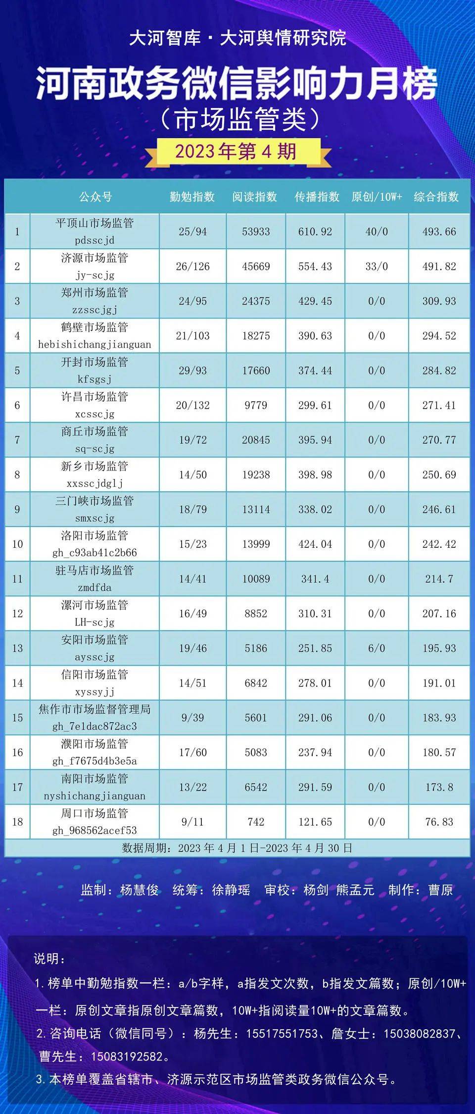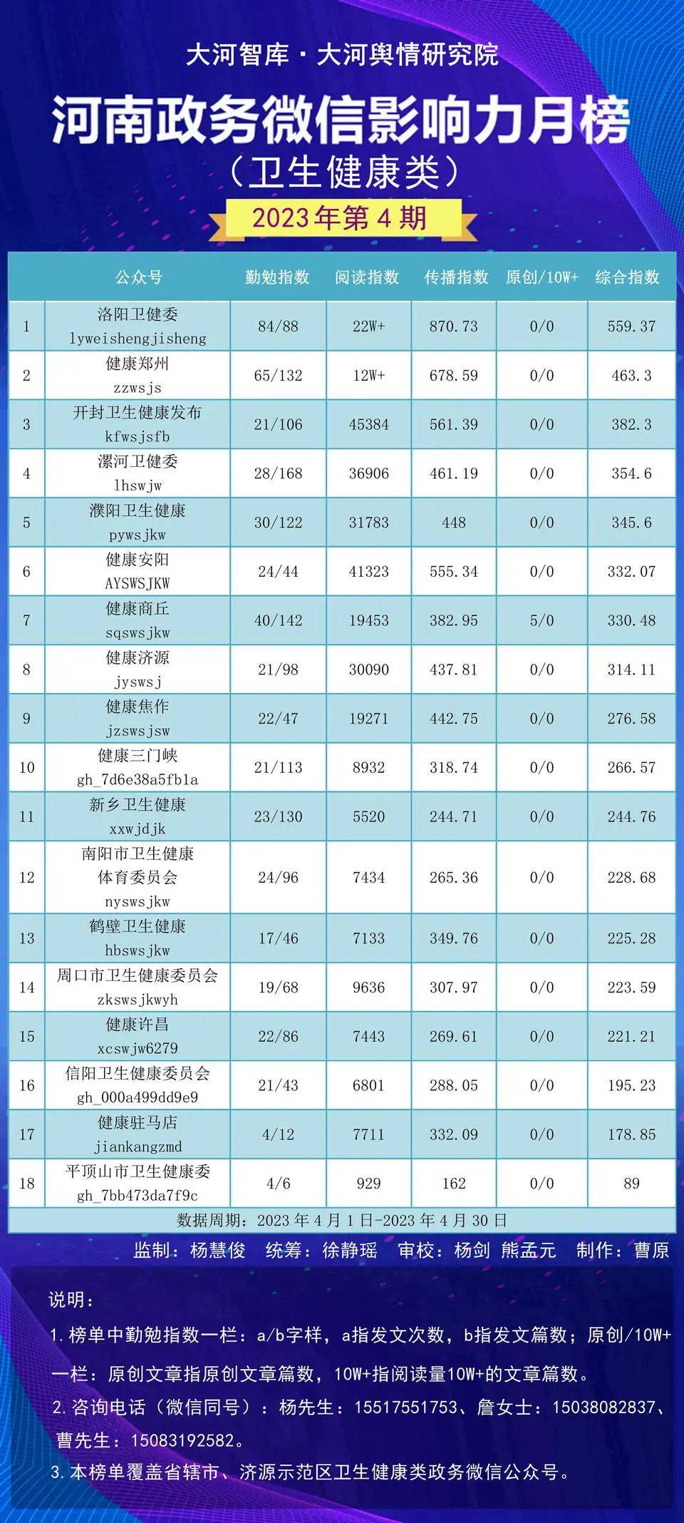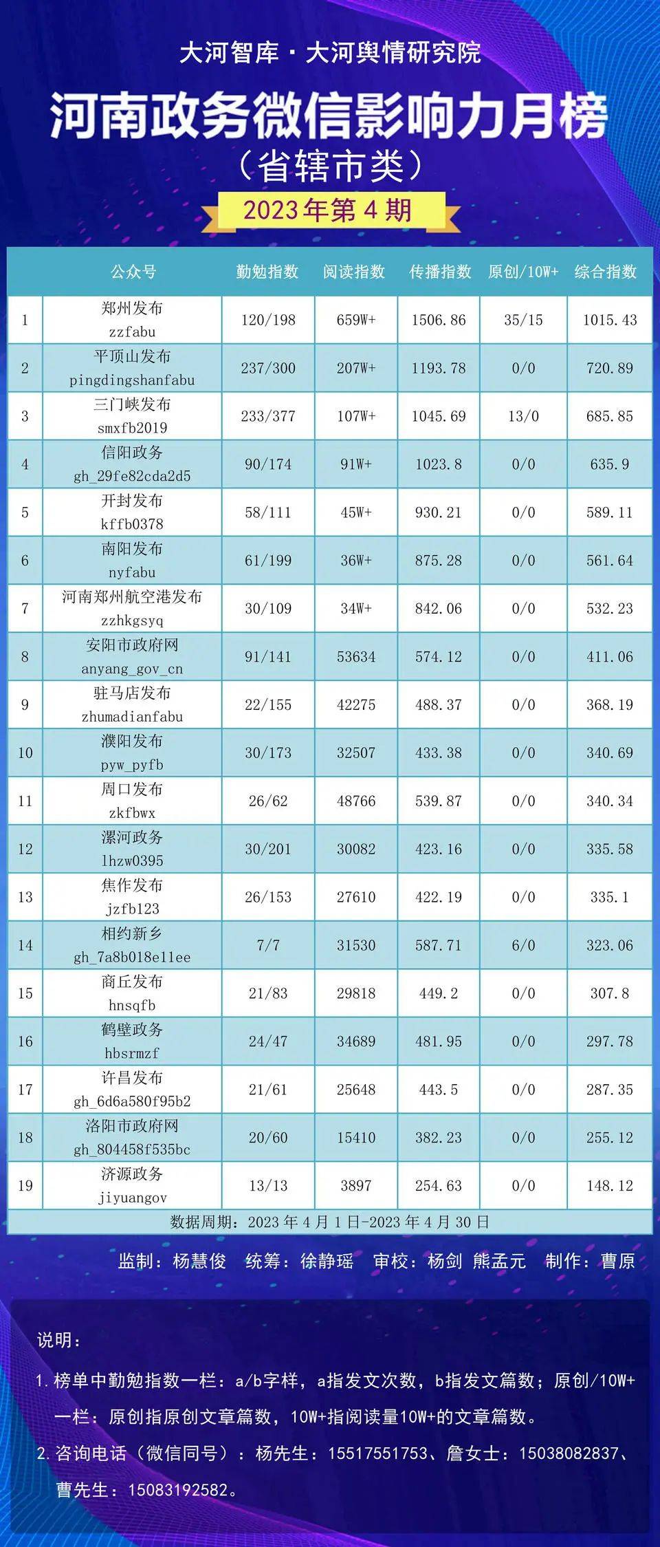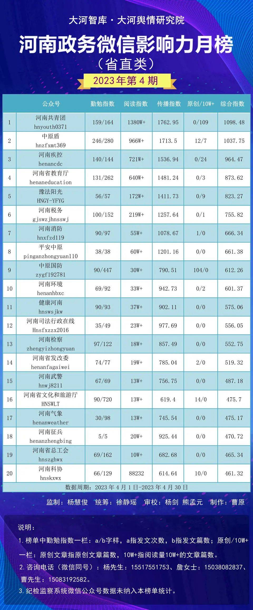 2023年5月15日,河南政务微信影响力月榜2023年度第4期第1批正式发布。