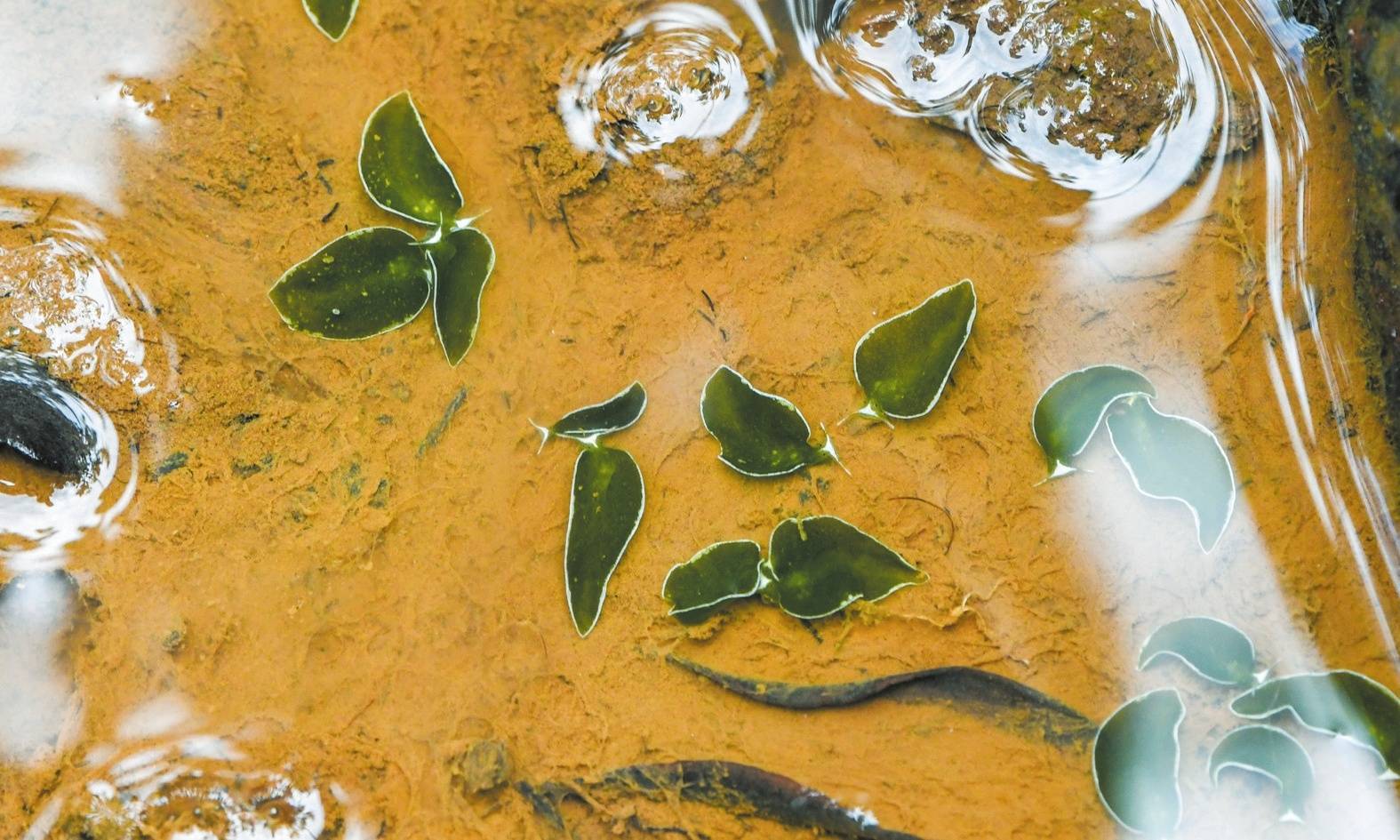 东寨港保护区种质资源圃内,“小叶片”形状的海天牛聚集在水洼中。