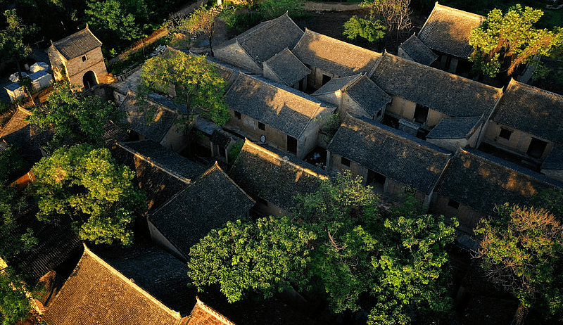 神禾塬上,万象更新。油菜、麦田、稻田组成的无边底色上,桃李簇拥,梅林入怀,一座古朴村寨跃然其上。分花拂柳步入其间,现今村落仍保留着关中传统建筑的风貌和文化烙印——“终南为屏、滈河为脉、神禾为依、川囿为基、化龙为岭、坡地成梯、平谷为田、循势成林”。碧蓝天幕下,终南山犹如锦屏般守护古村。