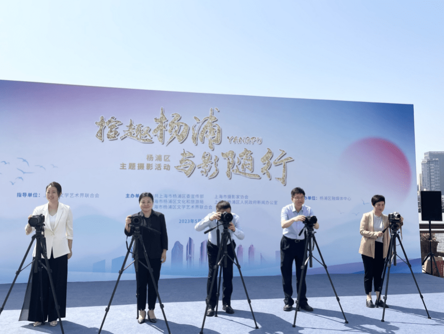 上海市文联党组成员、专职副主席、秘书长沈文忠,杨浦区委常委、宣传部部长卢刚,上海市摄影家协会驻会副主席、秘书长倪里勋,杨浦区委宣传部副部长、区文化旅游局党组书记、区文联主席胡琳,杨浦区委宣传部副部长、区委网信办主任、区政府新闻办主任李荣共同按下快门,启动此次主题摄影活动。