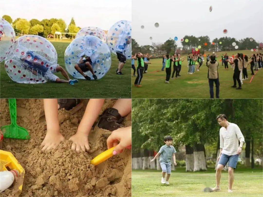 搭建帐篷休息,草地狂欢(极限飞盘、碰撞球、玩沙区、足球体验)