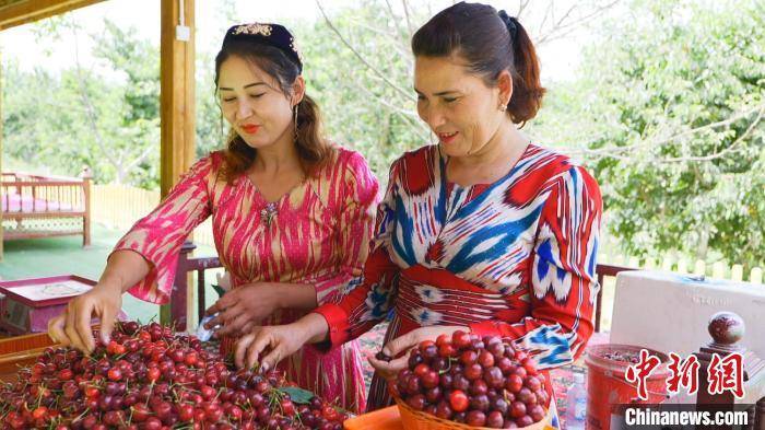 中新网新疆莎车5月15日电(孙亭文 麦麦提艾力·麦麦提明)眼下,新疆西南部的喀什地区莎车县4.5万亩樱桃已进入采摘季,这些樱桃色泽鲜艳,味道醇香,深受广大消费者的喜爱。