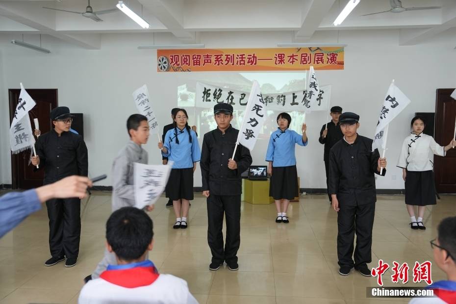 5月10日,济宁七中的学生们在排练舞台剧《觉醒中国》。崔楠 摄