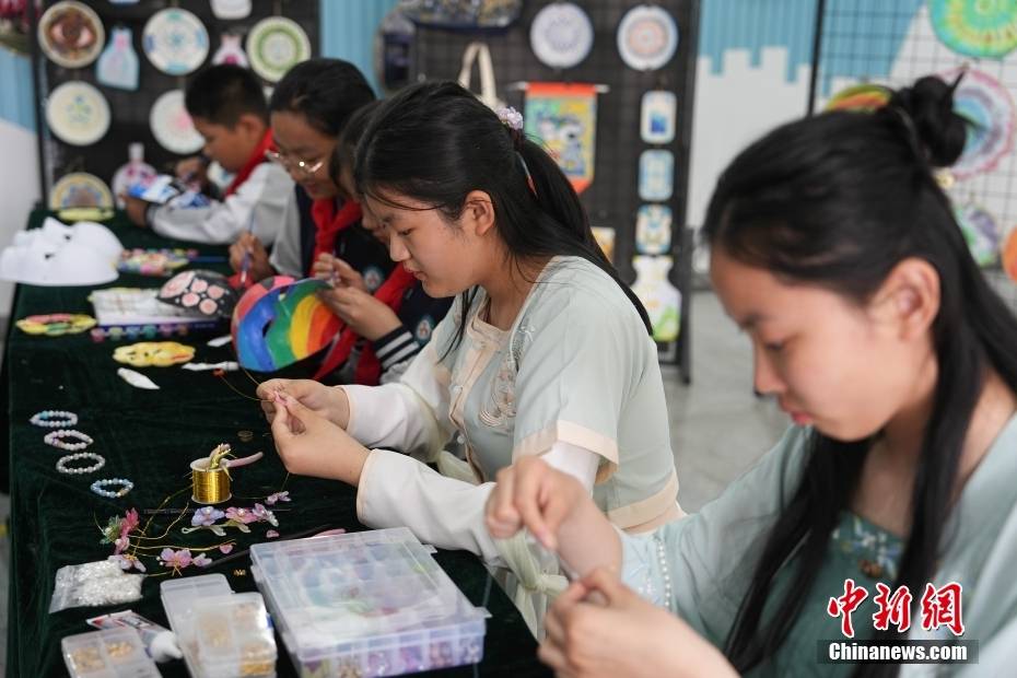 5月10日,学生们在济宁七中进行传统手工艺制作。崔楠 摄