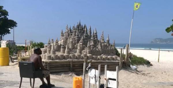 巴西的里约热内卢的一片沙滩上常年都有一座城堡坐落在那,这是个沙雕城堡,秀珍精致。