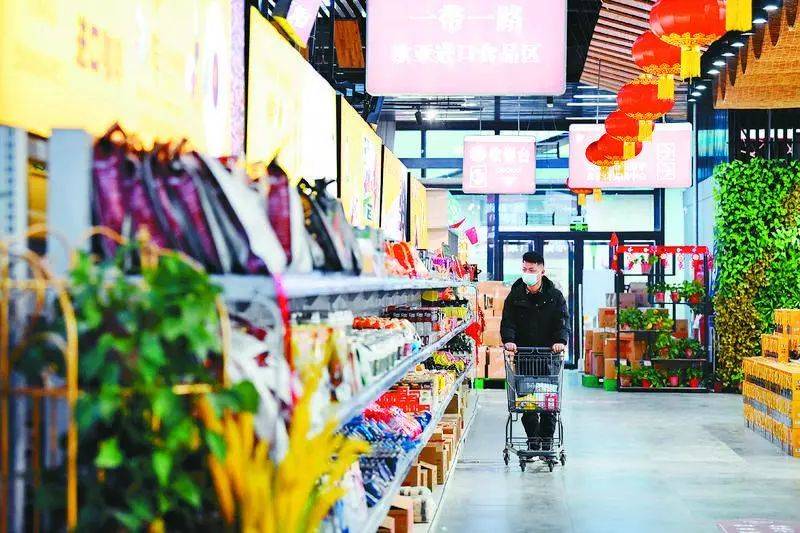 在西安国际港务区的爱菊健康生活体验馆,消费者挑选中亚进口食品。(新华社记者 李一博 摄 资料图片)