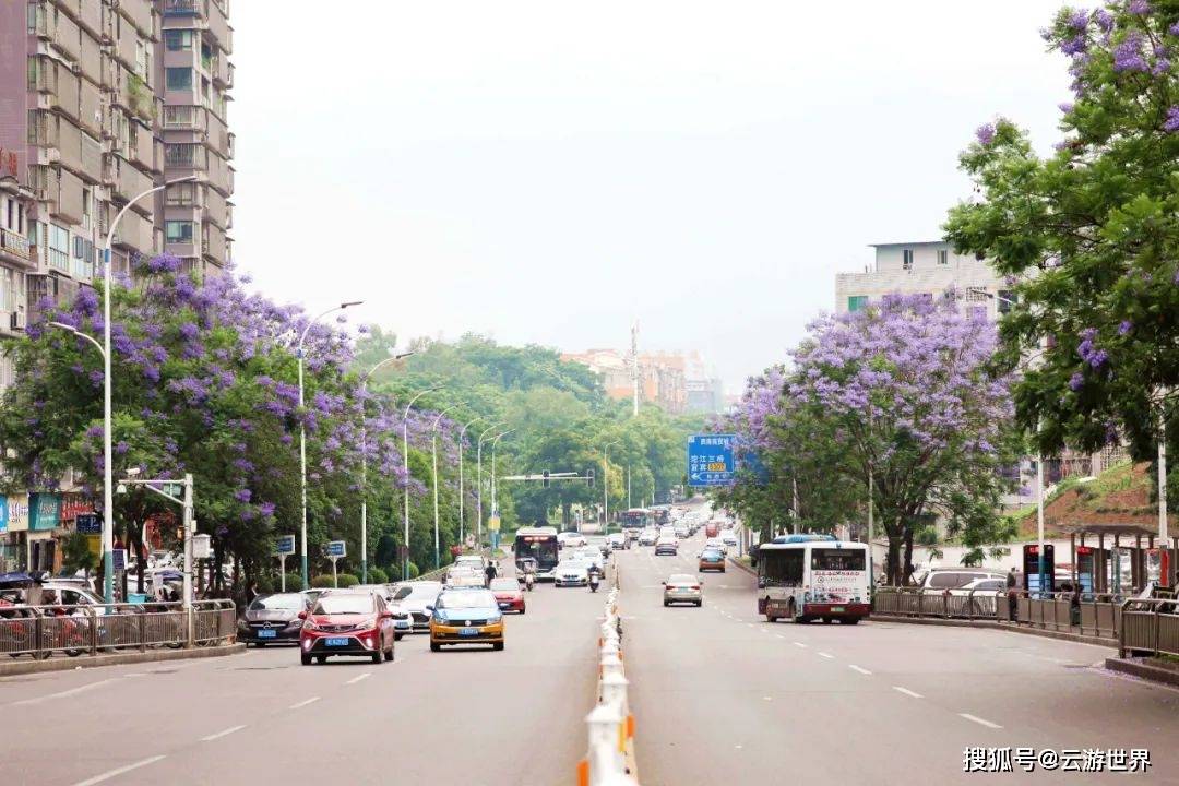 如果初夏的岁月有颜色那一定是蓝花楹的色彩,蜀泸大道旁一树树蓝花楹花朵竞相绽放为城市增添了一抹柔软的蓝紫色。