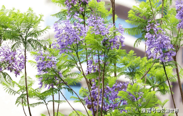 梦幻蓝花楹:朵朵蓝紫色小花串成饱满的花束初生枝头,迎风招展纷纷扬扬,无拘无束。